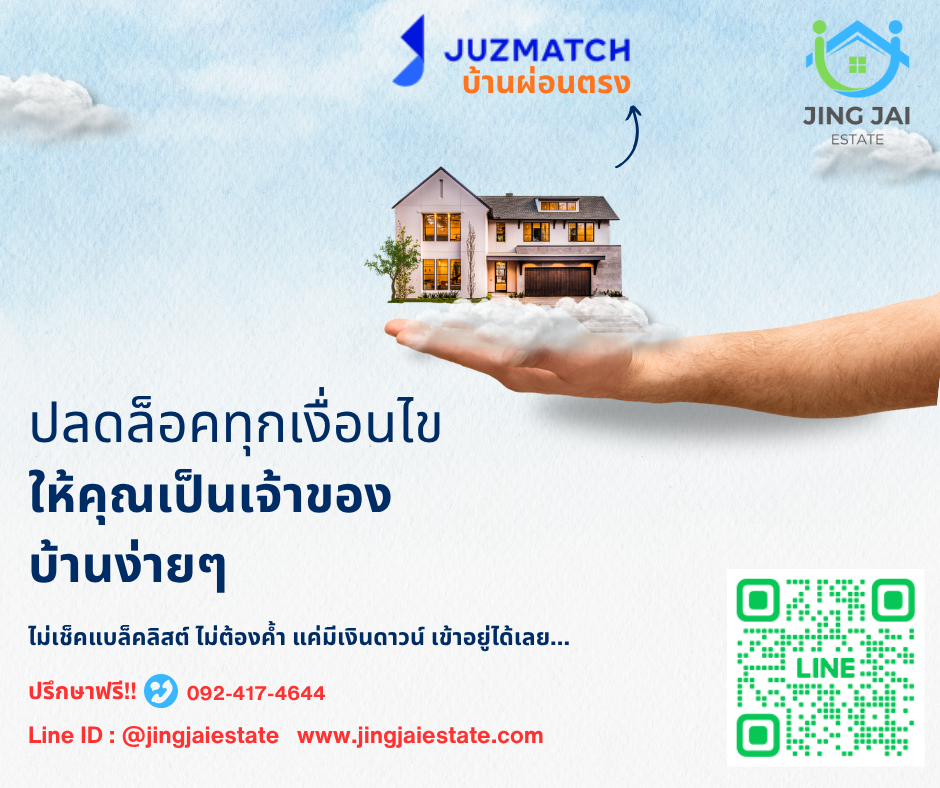 เป็นเจ้าของบ้านง่ายๆ ผ่านโมเดลเช่าซื้อกับ Juzmatch (บ.ร่วมทุนกับแสนสิริ) ไม่เช็คบูโร ไม่ขอดูสเตทเมนท์ ปลอดภัย รับทุกอาชีพ คนไทยทำงานต่างประเทศก็ซื้อได้...