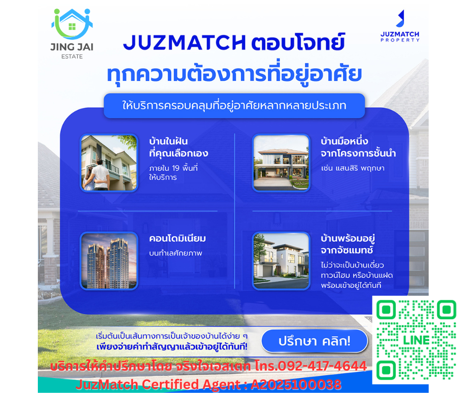 จริงใจเอสเตท Juzmacth Certified Agent ยินดีให้คำปรึกษาฟรี!